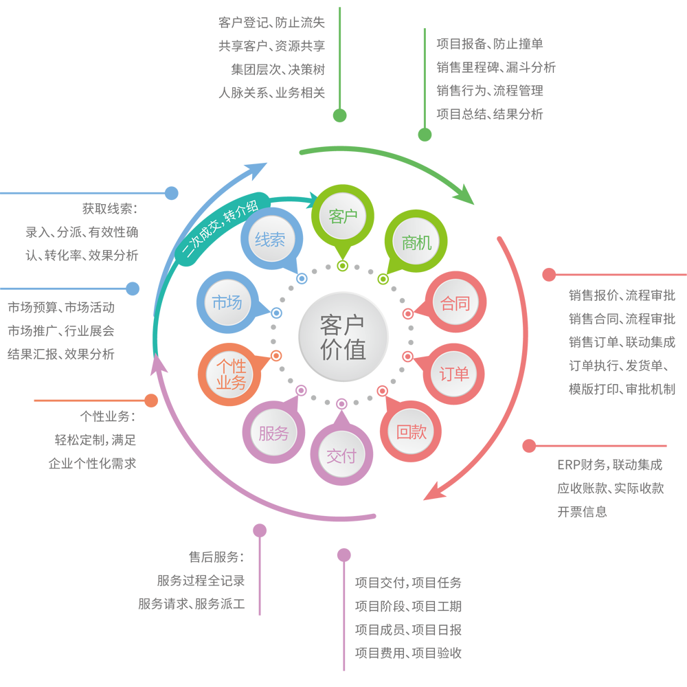 专业的管理系统工程一定是高度集成的,开放的接口,保持生态链良性发展。 | 集成呼叫中心、第三方ERP、OA、视频会议、单点登录、网银在线支付、微信、短信、Email、身份认证等。 | 大多为在线租用云部署模式,封闭式架构、不对外开放,不支持二次开发、第三方应用集成。 |